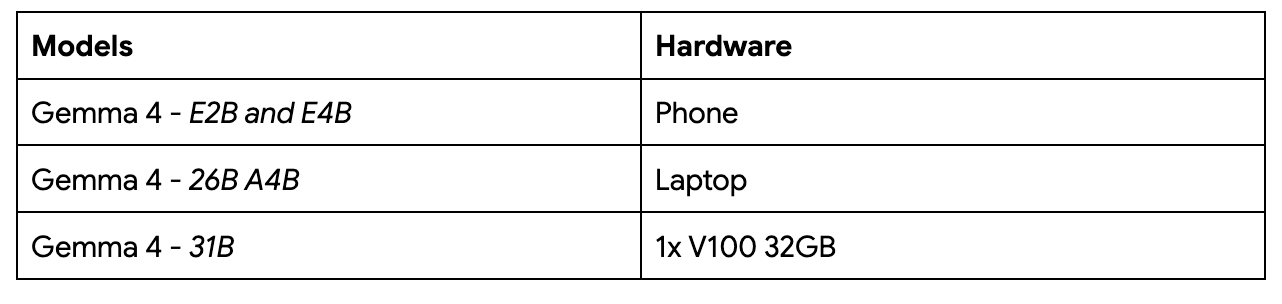 There are four models in the Gemma 4 family: