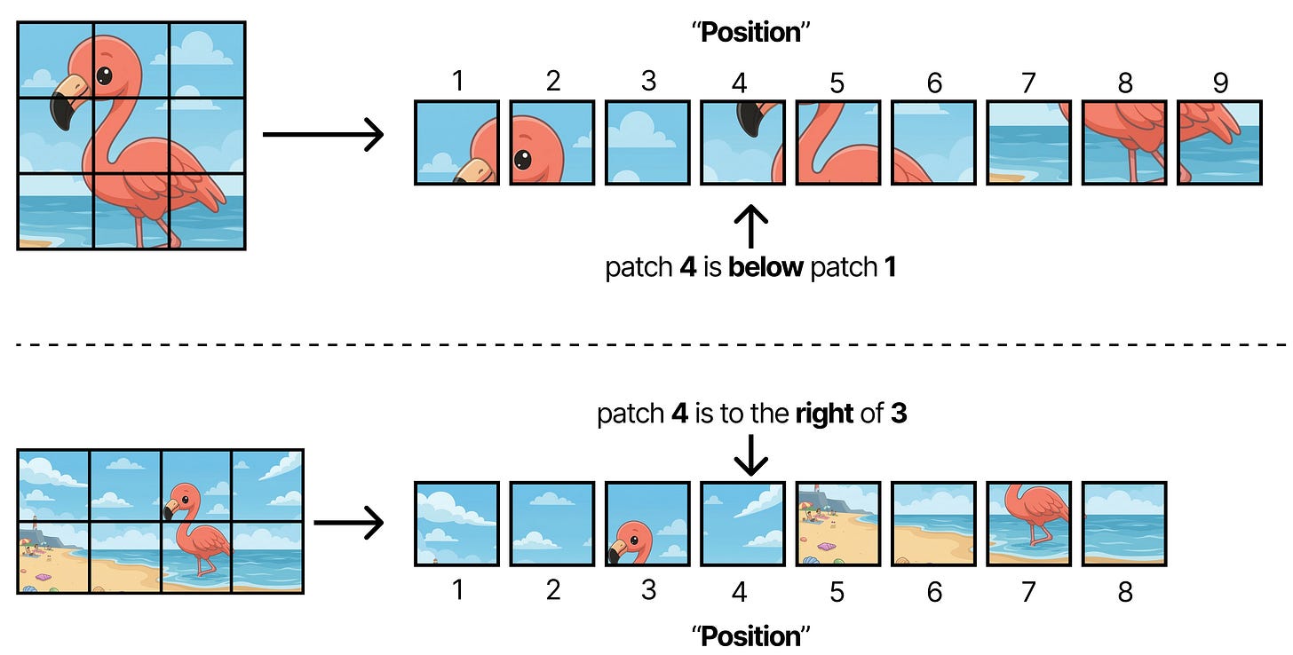 As such, applying RoPE is not straightforward anymore because the meaning of position (“Patch 4”) is now fully dependent on the aspect ratio of the original image.